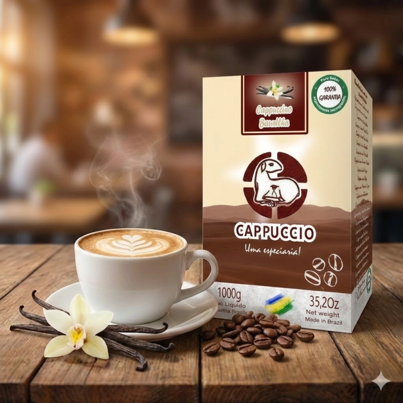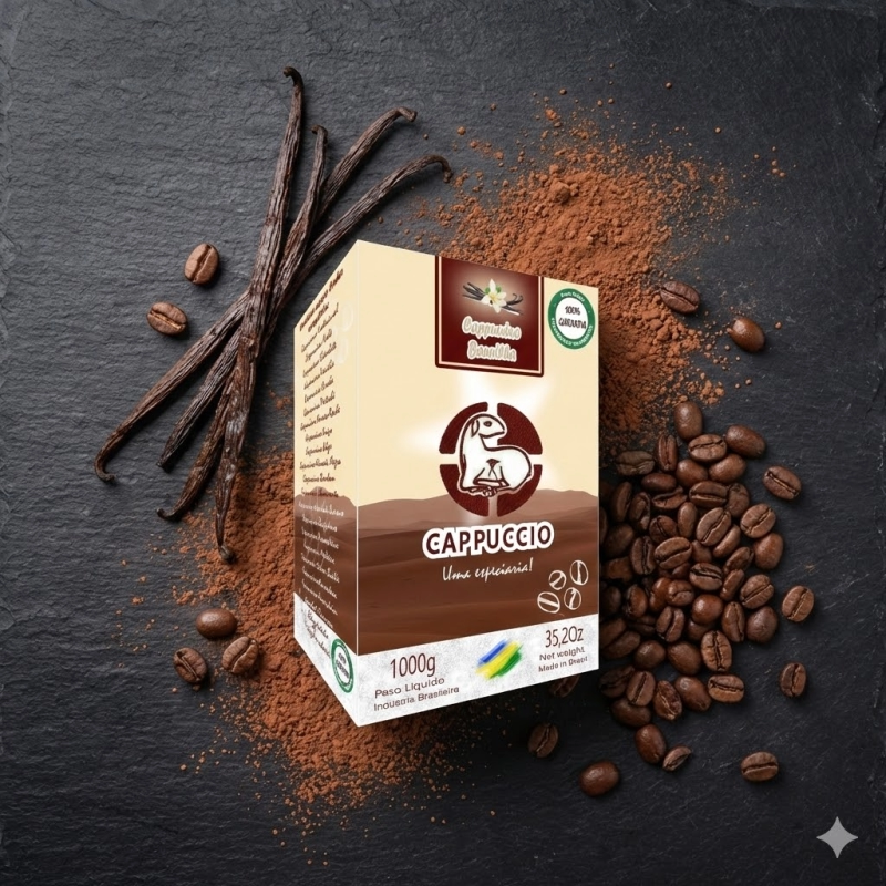 O CAPPUCCIO, Cappuccino baunilha tem sabor autêntico e textura cremosa. Perfeito para quem busca um produto saudável, de qualidade e com praticidade para seu dia-a-dia. Desfrute dessa explosão de sabor!