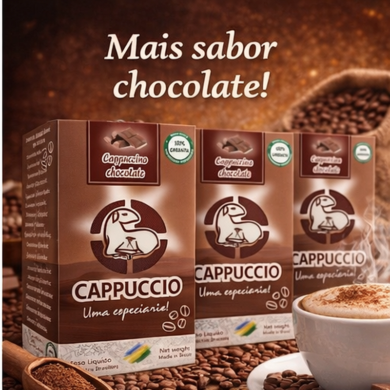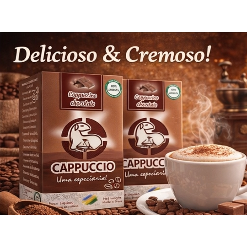 O CAPPUCCIO, Cappuccino chocolate tem sabor autêntico e textura cremosa. Perfeito para quem busca um produto saudável, de qualidade e com praticidade para seu dia-a-dia. Desfrute dessa explosão de sabor!